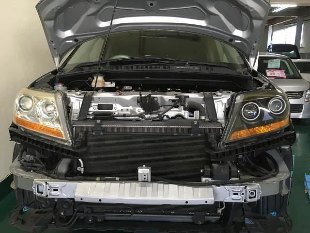 フロントグリル及びフロントバンパーをはずしヘッドライトを交換しました。