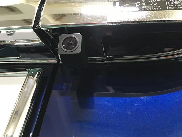 バックドアオープンスイッチの横にカメラを取り付け、配線はバックドア内部から室内に引き込みました。