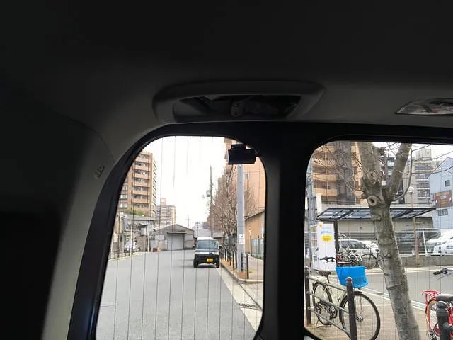 リヤカメラは左側ドアガラスの上部に取り付けました。