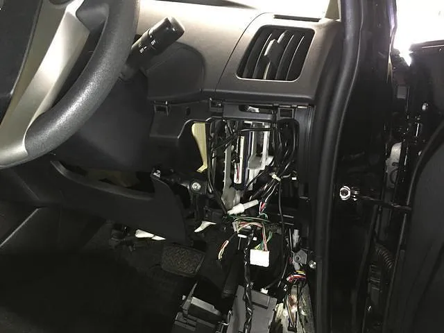 取り付けのため運転席とナビ廻りのパネルを取り外します。