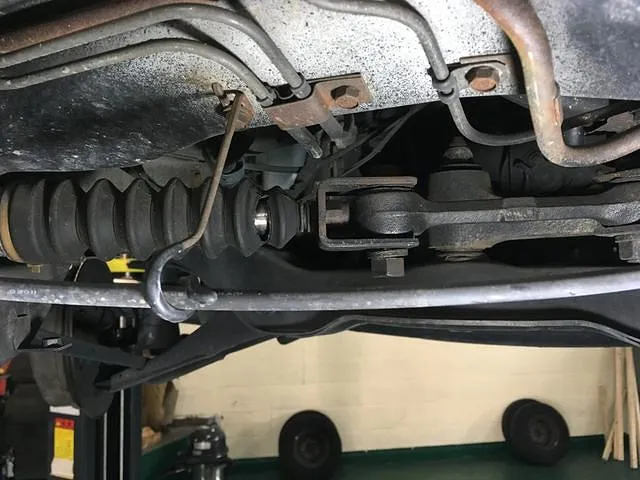 年式相応にゴム関係の劣化で、ステアリングブーツやロアアームボールジョイントブーツが破れていました。